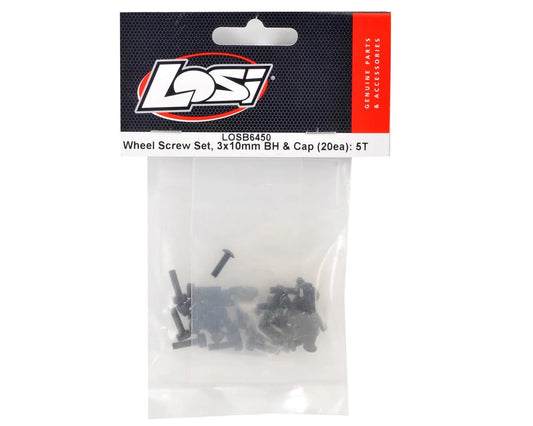 Losi Wheel Screw Set M3x10mm BH and Cap Screws (20ea) 5T, Mini WRC