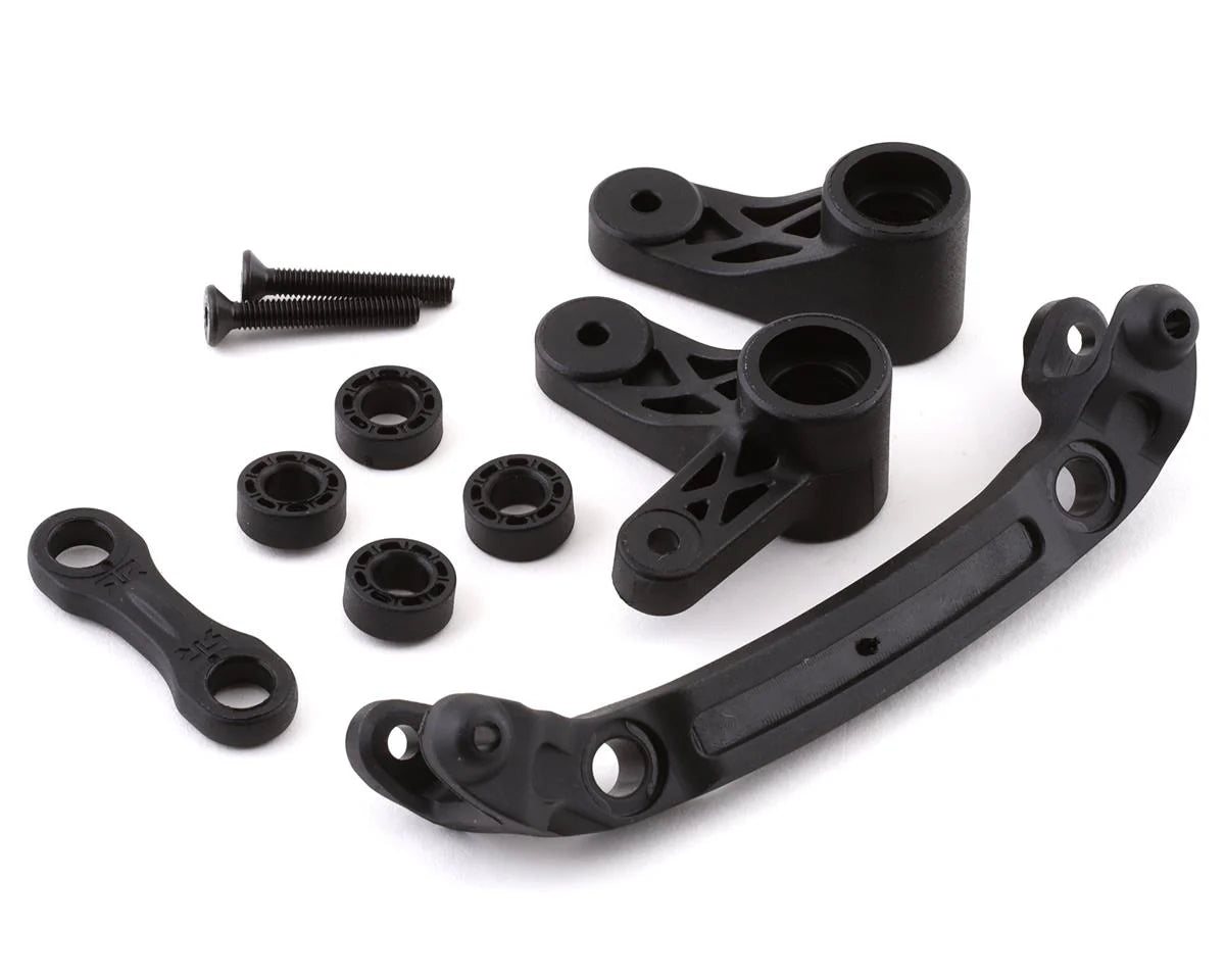 Arrma Steering Parts Set. This is a replacement steering parts set intended for replacement part for select Arrma 3S BLX/4x4 550 models. Package includes one servo link, one ackermann link, two bell cranks and four bushings.