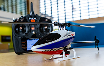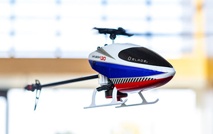 The Blade InFusion 120 helicopter features exclusive SAFE® (Sensor Assisted Flight Envelope®) technology, a revolutionary electronic flight envelope protection system that makes it easy for anyone to fly helicopters with confidence by providing flight mode versatility and Panic Recovery mode that automatically returns the heli to a level attitude.
