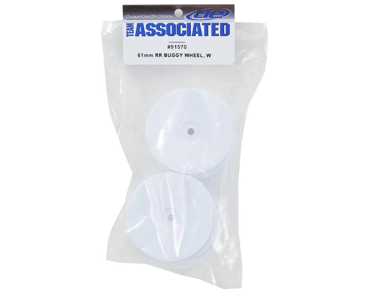 This is a pack of two optional Team Associated 61mm Rear Wheels, intended for use with the B4 and B5 series buggies equipped with a front 12mm hex. These wheels are intended for the next generation of taller 1/10 scale buggy tires.