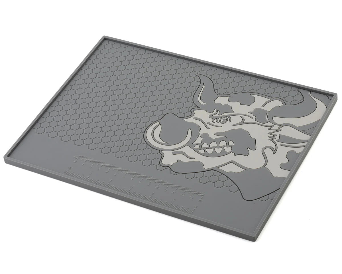 Cow RC 9"x12" Screw Catcher Solder Mat. Molded from heat resistant industrial grade silicone molded rubber that is non-slip, rollable and incredibly durable, with a built-in ruler, this solder mat is a must have to keep your station or pit protected during soldering! Features a large Carbon Cow head logo with a hex pattern to keep hardware from rolling, this mat can also be used as a screw catcher whenever soldering is not needed, making this screw catcher solder mat the ultimate addition to any racer pit spot!