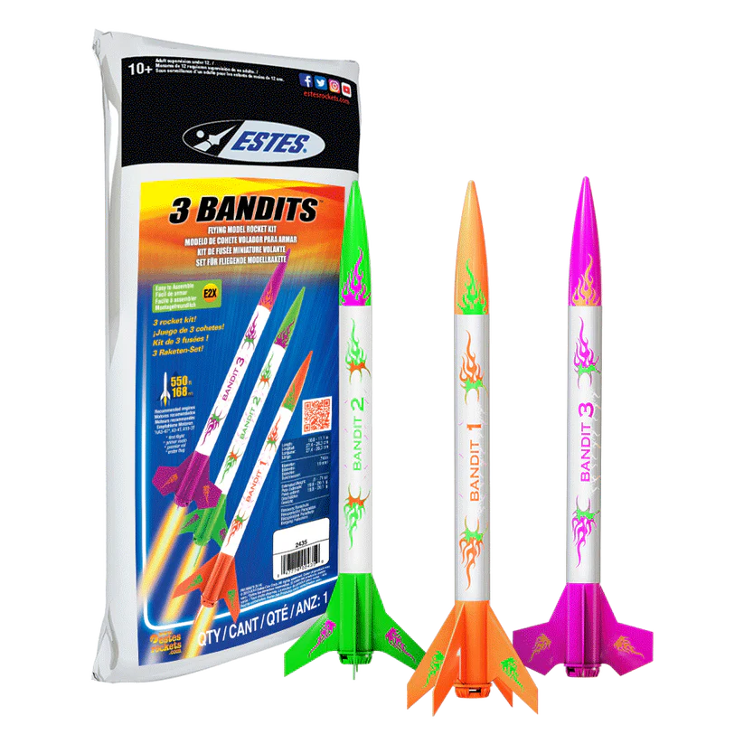3 Bandits Model Rockets might be small, but they pack a powerful punch and are sure to provide a day of excitement and fun for the whole family. Don't let these bandits get away, grab them now and join the heist in the clouds!