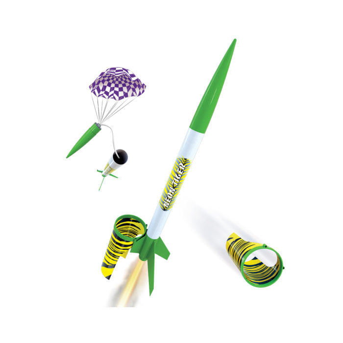 Keep your eyes on the Estes Neon Tiger – you’ve never seen a rocket quite like this! Easy to assemble and simple to launch, this brilliant green and white, Beginner-Level rocket sports a detachable ring glider for spectacular lift-offs and recoveries.