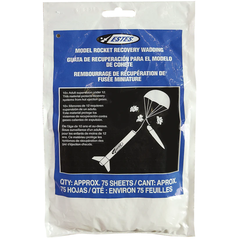 Flame resistant recovery wadding protects the recovery system and is necessary to launch model rockets.