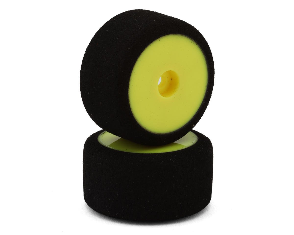 The HackFab rear Foam Tires for the Losi Micro-B/T are a performance-focused upgrade, factory pre-mounted on specially designed wheels with equal offset for balanced track width. Their wider-than-stock rear profile reduces twitchiness and improves high-speed stability, while the larger diameter boosts surface contact for enhanced grip on carpet and similar tracks. With a sleek gloss finish, 7mm hex design for easy installation, and multiple color options, these tires offer both precision handling and visual appeal — making them a top choice for serious micro racers.