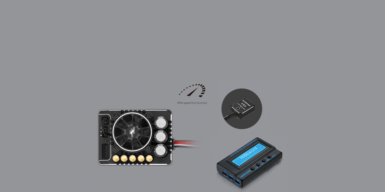 he ESC is able to support up to 6 different speed (RPM) selections to meet the needs and demands of various competitions in the world. It can be programmed through using the latest OTA Bluetooth module or the traditional 3in program box.