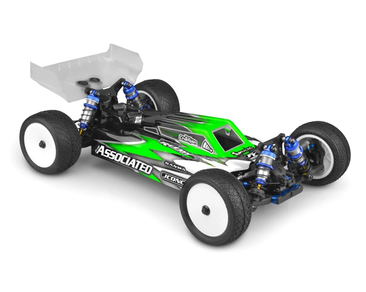The JConcepts Clear RC10 B74 "F2" Body with S-Type Wing was designed with aspects learned from the original Finnisher bodies. The F2 is a drop fit for the popular Team Associated B74 and provides an even more aggressive look with details that are crucial to performance.