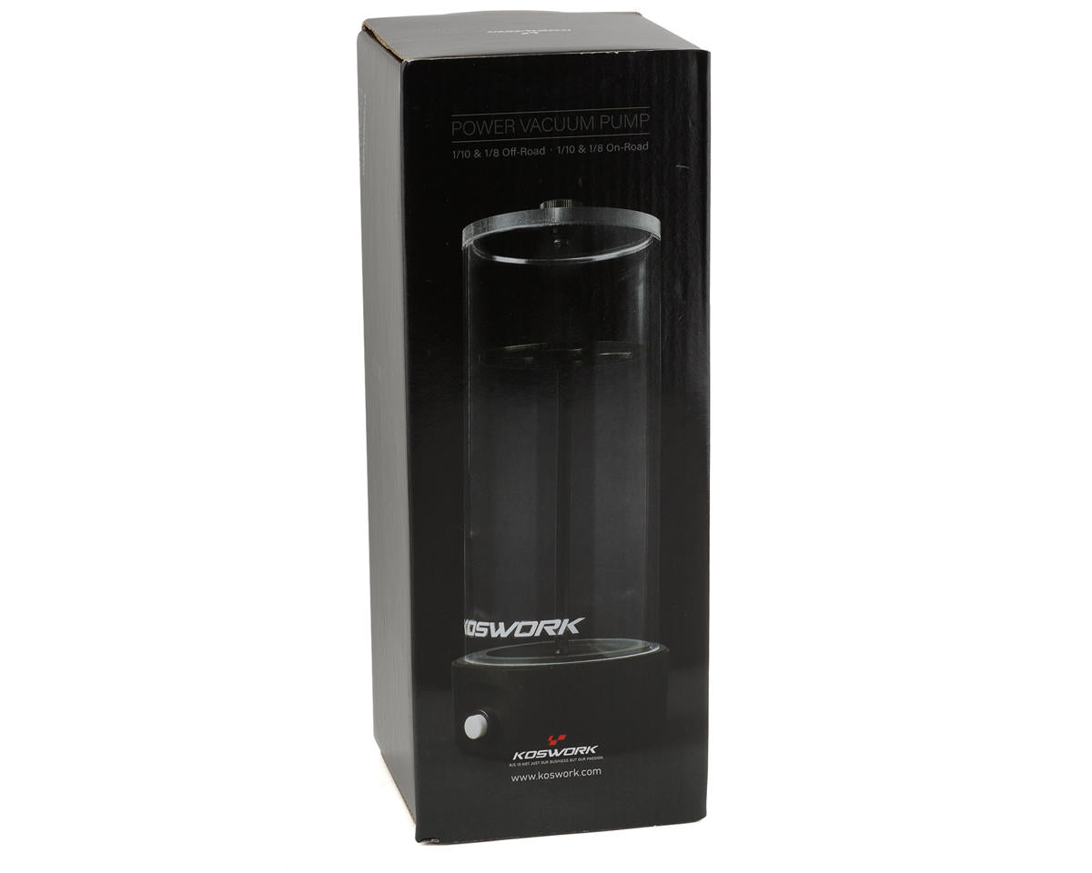The Koswork On-Road 8.4V DC Shock Air Removal Vacuum Pump has been designed to be a must have setup tool. Having air in your shocks or differential can affect how they perform. Having air in your shocks can show up as being stiff in certain places to the shock expanding on its own. Having too much air in your differential can lead to premature wear or even a change in the way the differential feels. Using this air removal tool will allow you to have a blank slate ensuring that your shocks and differential work the way you intend them to.