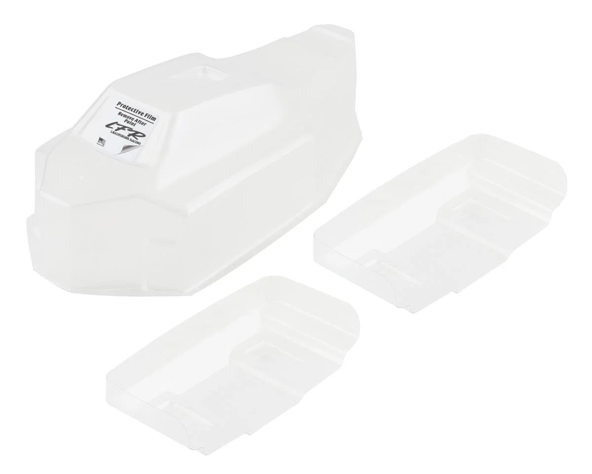 This is the Leadfinger Racing Tekno EB410 A2 1/10 4WD Clear Buggy Body with Tactic Wings. Featuring aggressive lines and functional aerodynamics this body brings race winning looks in a performance driven body style. Incorporating a strategically placed cab cutout optimizes cooling for consistency on longer runs and happy electronics. Overall this body is an excellent option for the EB410 while looking great at the same time.