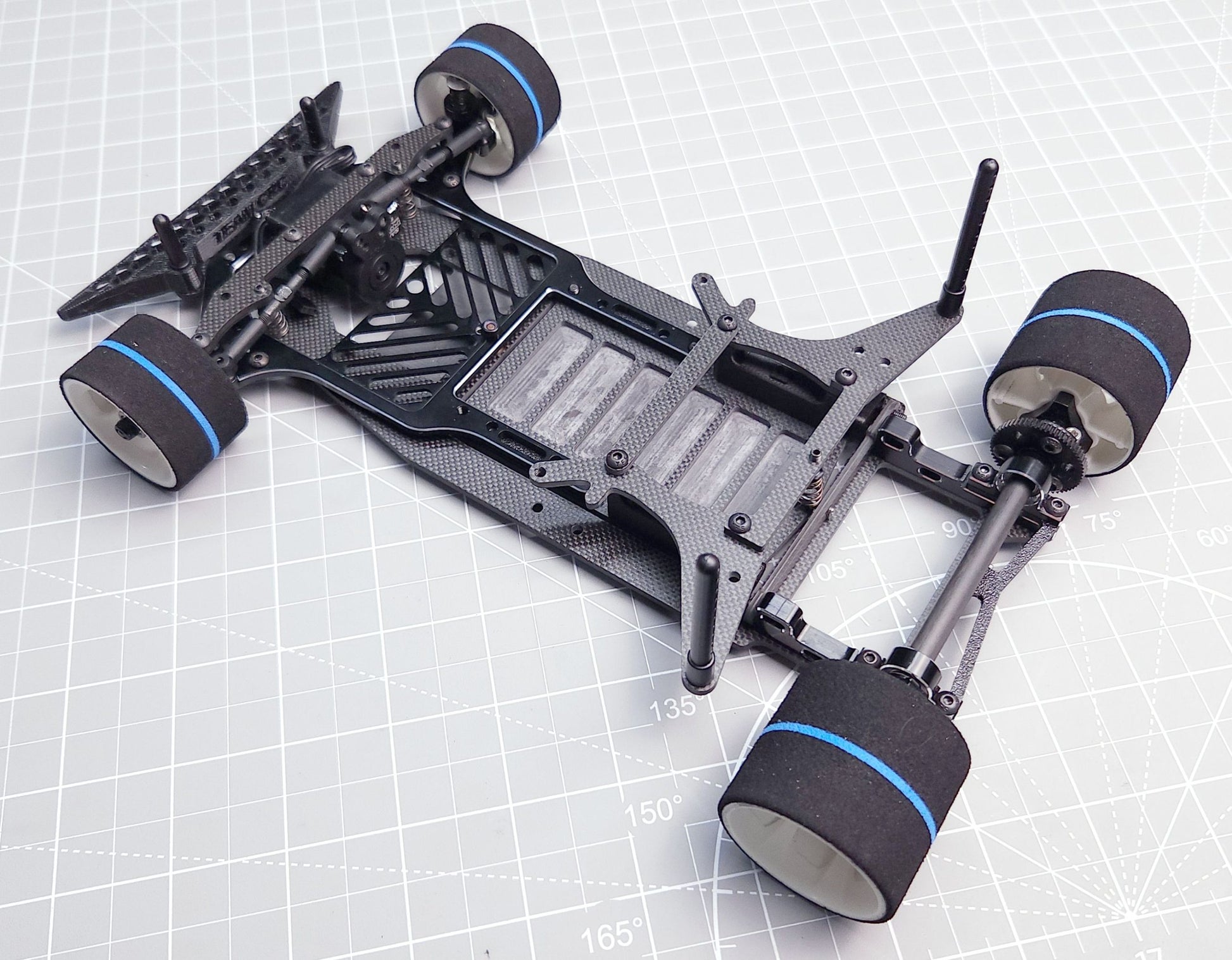 The car features super strong, precision machined motor plates with a very low center of gravity. Two locking hubs clamp onto a lightweight differential axle which makes is less costly to switch to a differential. Just add a diff hub and bearing to affordably switch to a differential, perfect for the popular GT12R class.