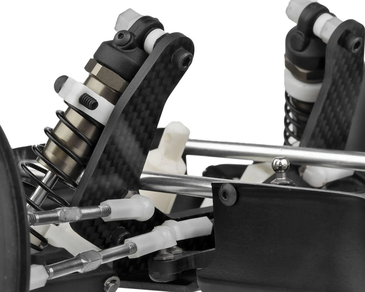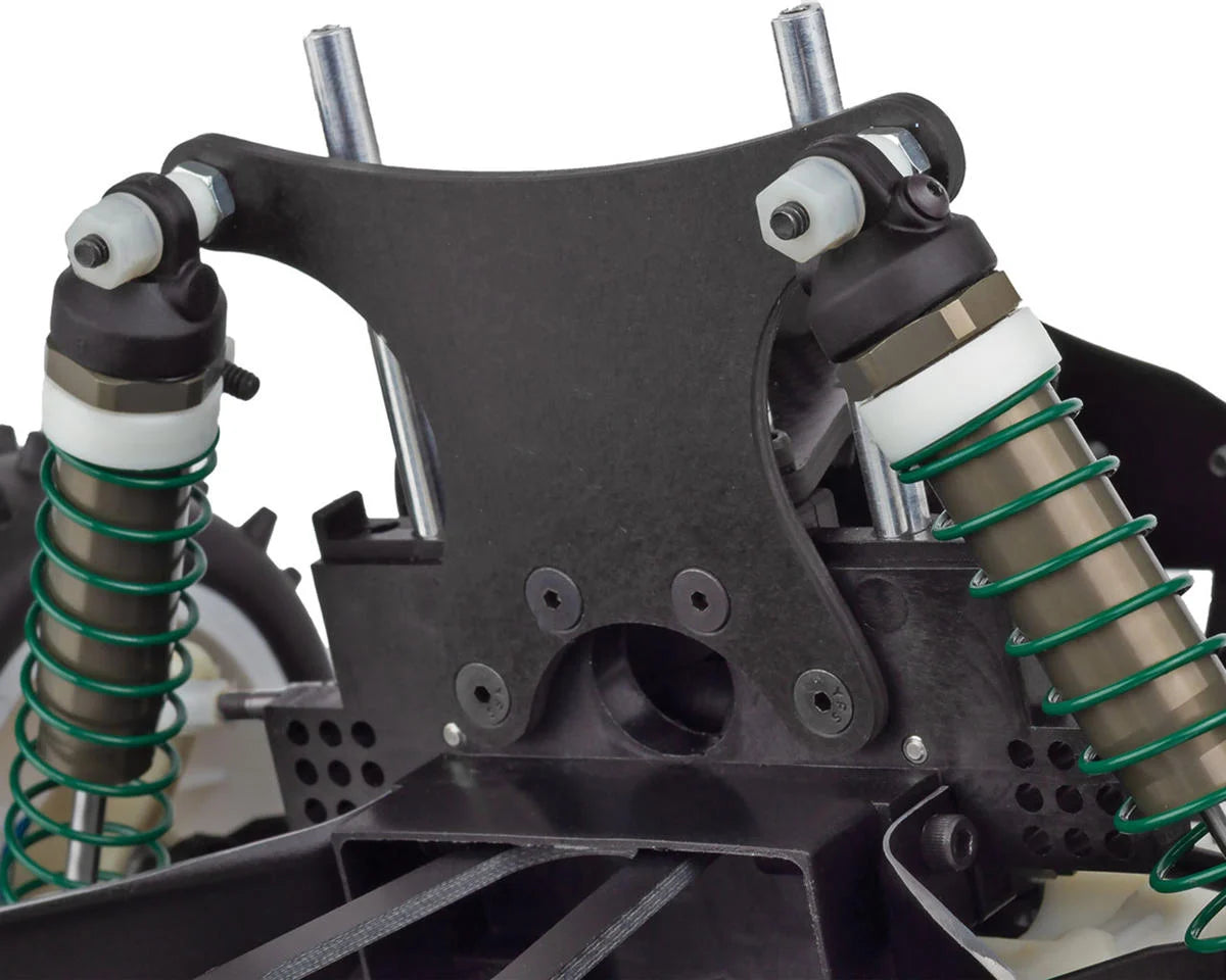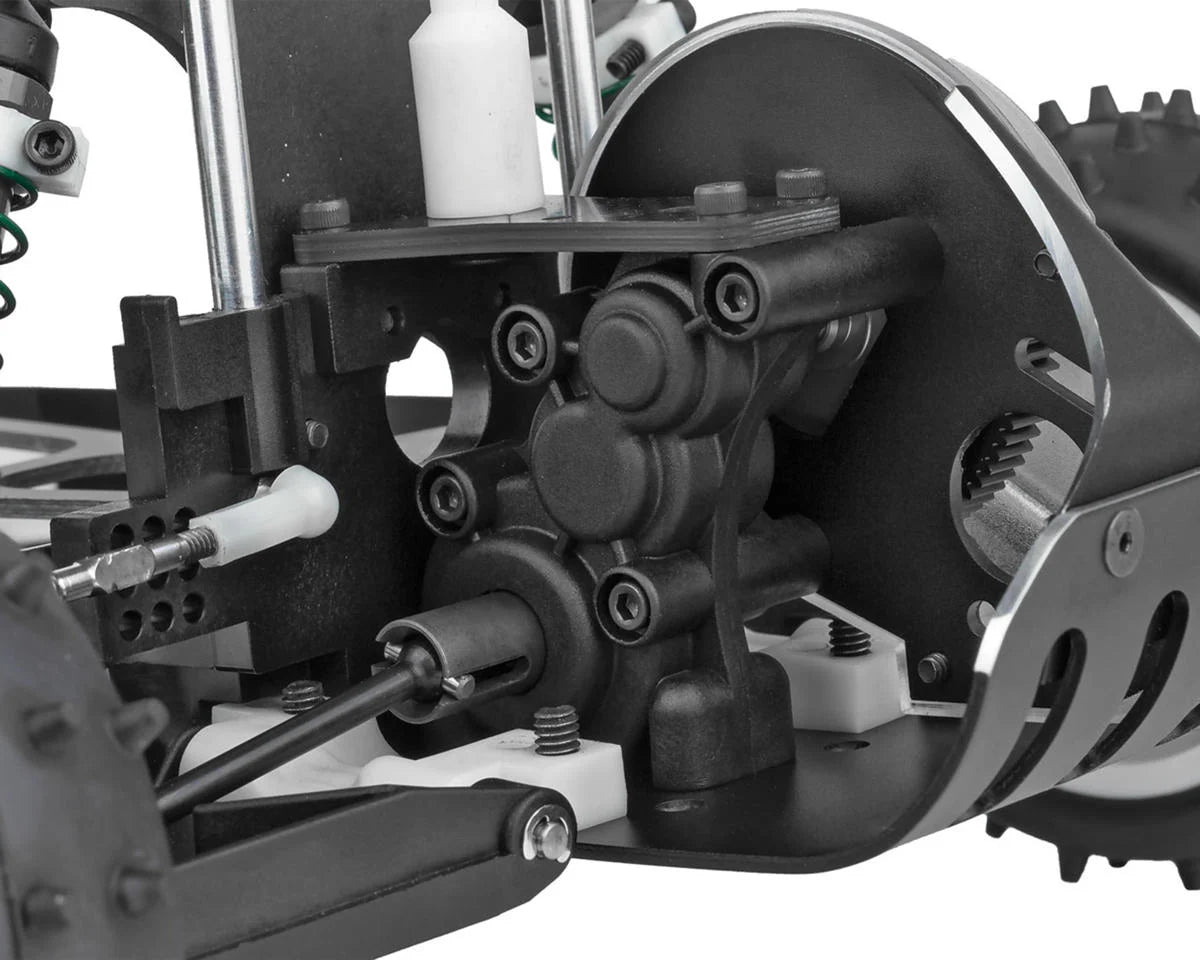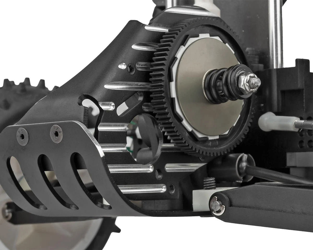 One of the standout features of the RC10 Kinwald Edition is its fully adjustable four-wheel independent suspension. The A-arm and ball joint design allow for precise tuning of camber, caster, ride height, and spring rate. This advanced suspension system provides smooth handling across rough terrain, while the long throw hard anodized racing shocks ensure silky smooth action. The design also offers exceptional ground clearance and a low center of gravity, making it ideal for high-speed off-road racing.