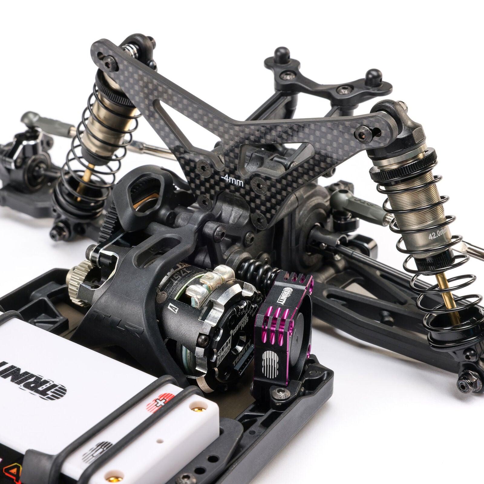 If you're ready for the podium, the 22X-T is equipped to take you there. Key improvements include a hard-anodized 2mm 7075-T6 aluminum chassis that's lengthened and optimized for today's higher grip tracks, plus adjustable body mounts and all-new front and rear arms. The buggy-length shocks and lower towers produce a lower CG, while larger, 13mm big-bore shocks with 13mm springs contribute to plush landings and quick cornering.