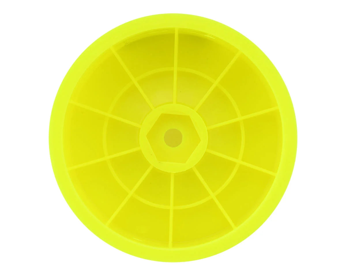 Pro-Motion 2.2" Rear Buggy Wheels. Crafted with a focus on durability and weight reduction, these wheels are engineered using a tougher wheel material, tailored to excel on modern high-grip tracks. The inner lightweight rib design ensures optimal strength without unnecessary bulk, while advanced manufacturing techniques guarantee a balanced and true wheel. Featuring a small, lightweight inner rib on the mounting surface and integrated vent holes, these wheels stand out as the ideal choice for peak performance.