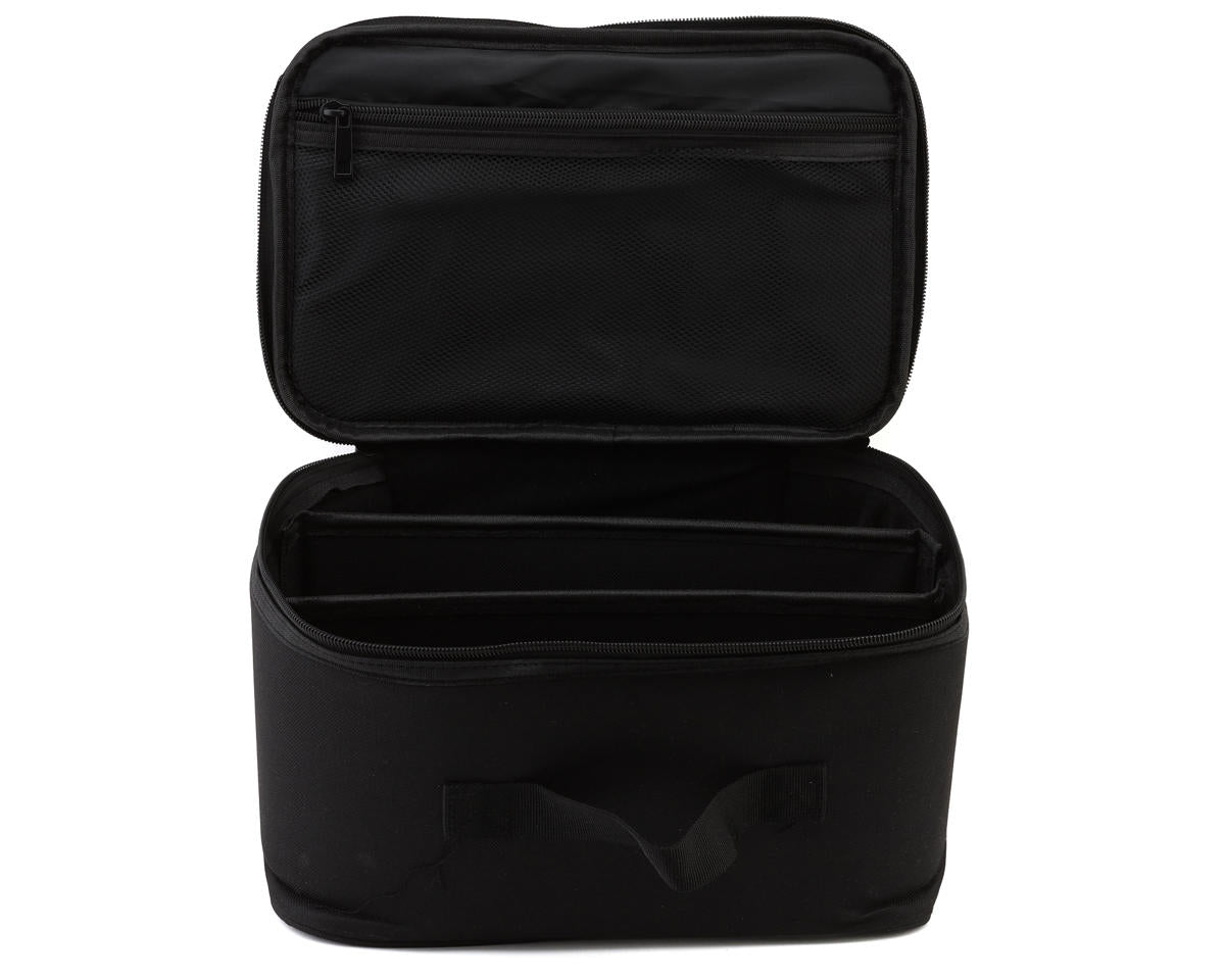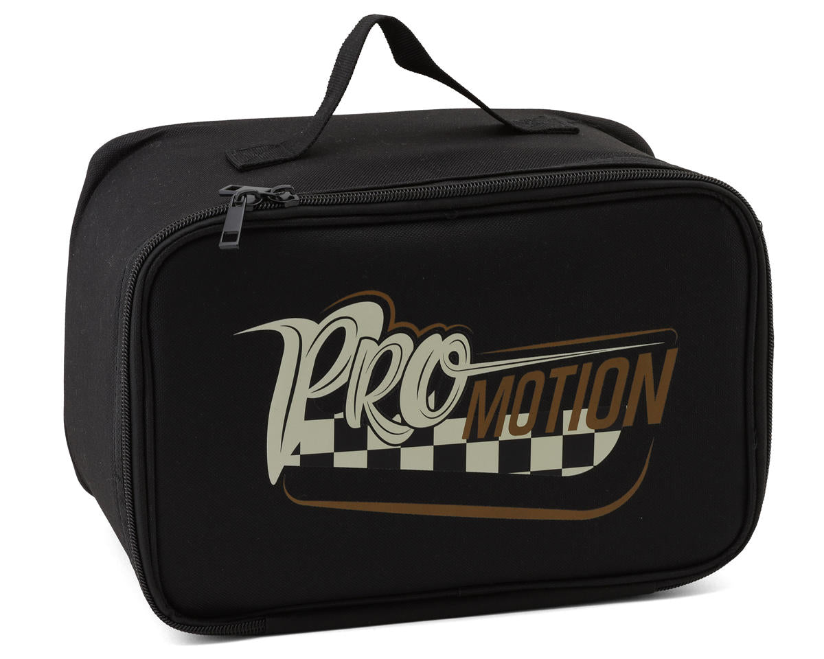 The Pro-Motion Fluid and Accessory Bag is the perfect solution for safely storing and transporting shock and differential oils, adhesives, and other essential accessories. Made from durable canvas material, it features adjustable, oil-resistant dividers that can be customized or removed entirely to fit your needs. A secure dual-zipper closure keeps everything protected, while the mesh pocket under the lid provides extra storage for small items. Designed to hold tall fluid bottles upright, this lightweight yet sturdy bag prevents spills and leaks, making it an essential addition to any RC racer’s gear.