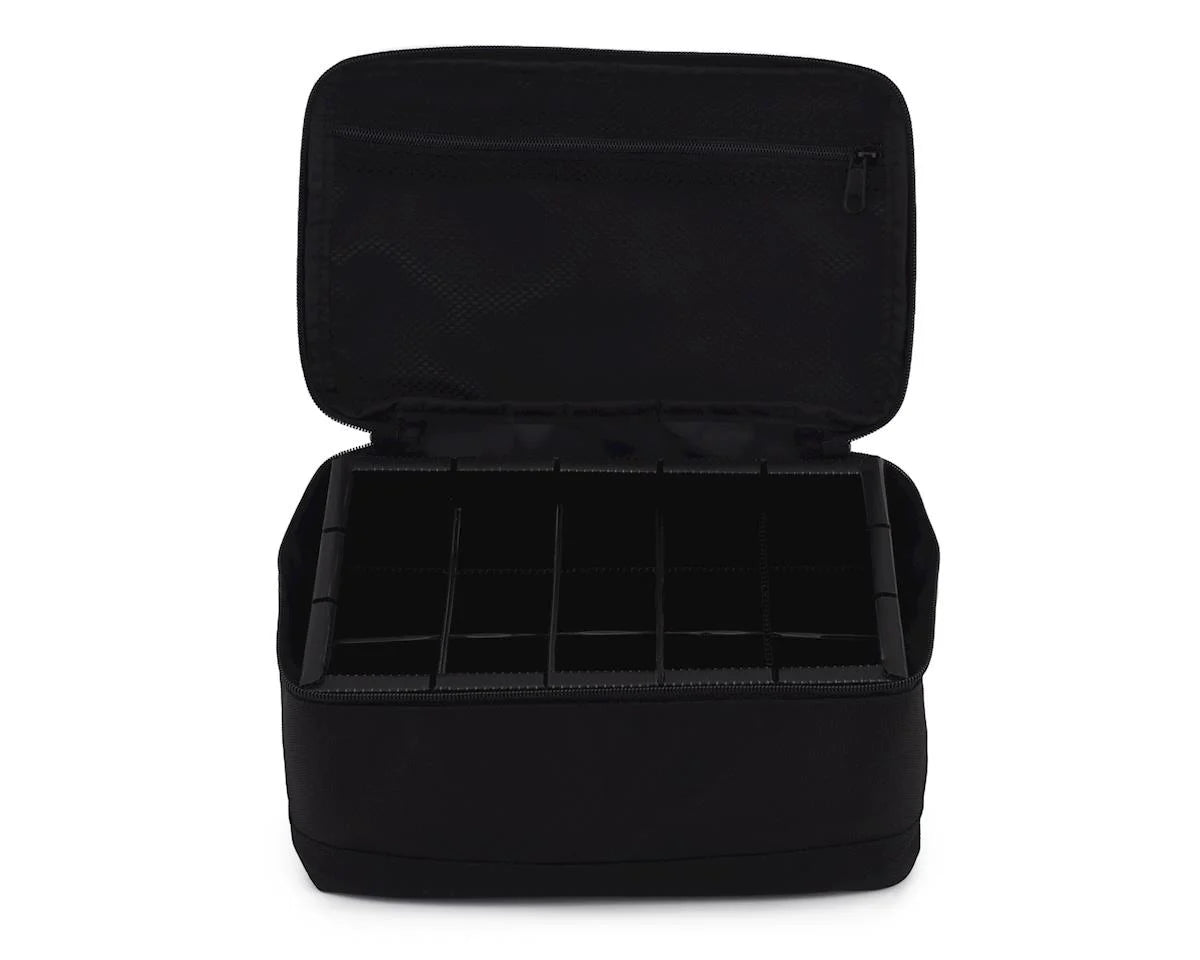The ProTek RC Shock & Differential Fluid Bag is a convenient way to haul and organize silicone fluids, adhesives, or anything else that fits inside one of the fifteen 41x104mm slots. The bag itself is made from heavy duty nylon material and measures 275mm wide, 160mm deep and 120mm tall. The corrugated plastic dividers are lightweight and durable, and will help the bag hold its shape over time. The lid of the bag features a large ProTek RC logo in silver, while a 250x110mm mesh zippered pocket on the inside of the lid is a great spot to stash setup sheets, tools or other small accessories that may come in handy during shock and diff maintenance. If you are serious about keeping your gear neat and tidy, this bag is a must have accessory.