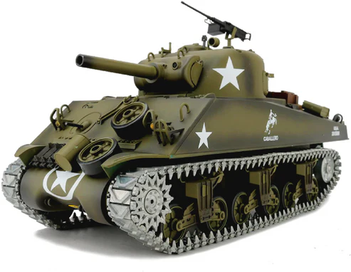 The U.S.A M4A3 "Sherman" RC tank, an exact replica of the famous American tank used during World War II. This remote-controlled tank captures the essence of the original Sherman tank with its sleek design and authentic features.