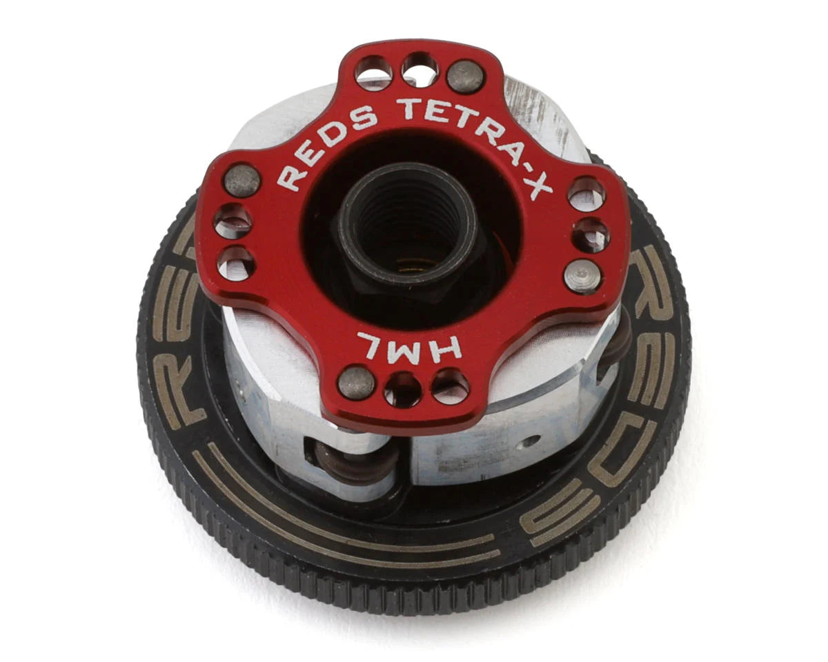 REDS 32mm "Tetra-X" EasyFit Steel Off-Road Adjustable Four-Shoe Clutch System. This clutch system is designed for high performance and durability in off-road racing. The clutch system features the innovative EasyFit design, which allows for effortless installation without the need for tools as it comes pre-assembled. This user-friendly setup provides racers with quick and hassle-free adjustments, offering three preload settings between high, medium, or low on the front plate to adapt to various track conditions and engine outputs. The system is engineered for longevity, using durable materials that are built to withstand the rigors of competitive racing and reducing the need for frequent replacements. The flywheel is made from durable steel, offering a higher inertia than aluminum flywheels when used on the recommended low-grip tracks. The clutch delivers smooth and controlled power, reminiscent of the classic REDS "Tetra" clutch, ensuring precise handling and improved overall performance on the track. Known for their reliability and compatibility, REDS clutches are compatible with a wide range of Buggies and Truggies, making them a top choice for serious racers seeking to optimize their racing experience.