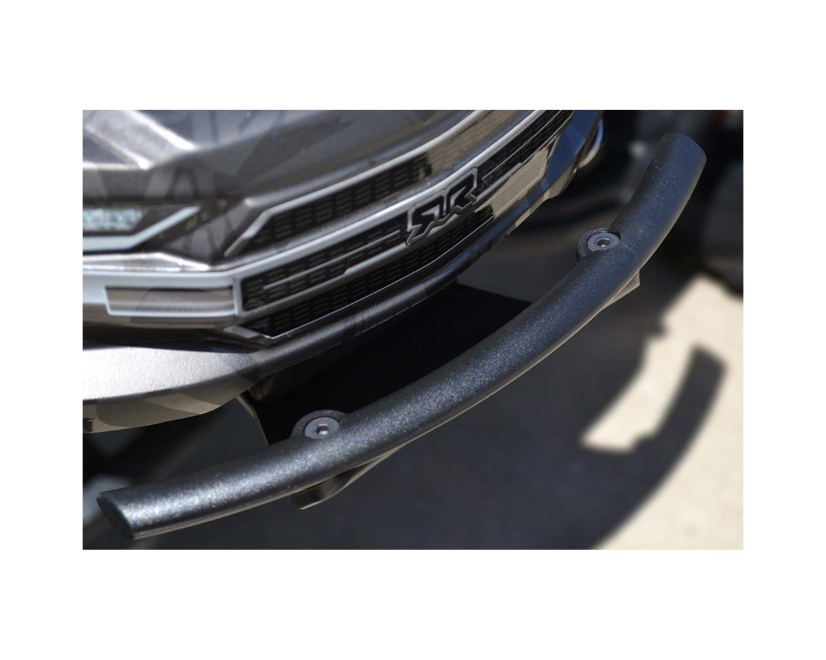 The RPM Front Bumper for the ARRMA Kraton 6S is structurally engineered to add much needed impact-absorption. It dramatically reduces transferred impact forces to the chassis. Furthermore, the two-piece design incorporates a 4mm thick skid plate with 1.5mm skid ribs. Each rib extends more than 1-1/2” (38mm) in front of the chassis and protects the front of that expensive aluminum chassis from skid and impact damage. A huge, 3/8” x 1/2? x 6-3/4” (9.5mm x 12.7mm x 171.5mm) curved oval bumper is bolted on top to help protect the body.