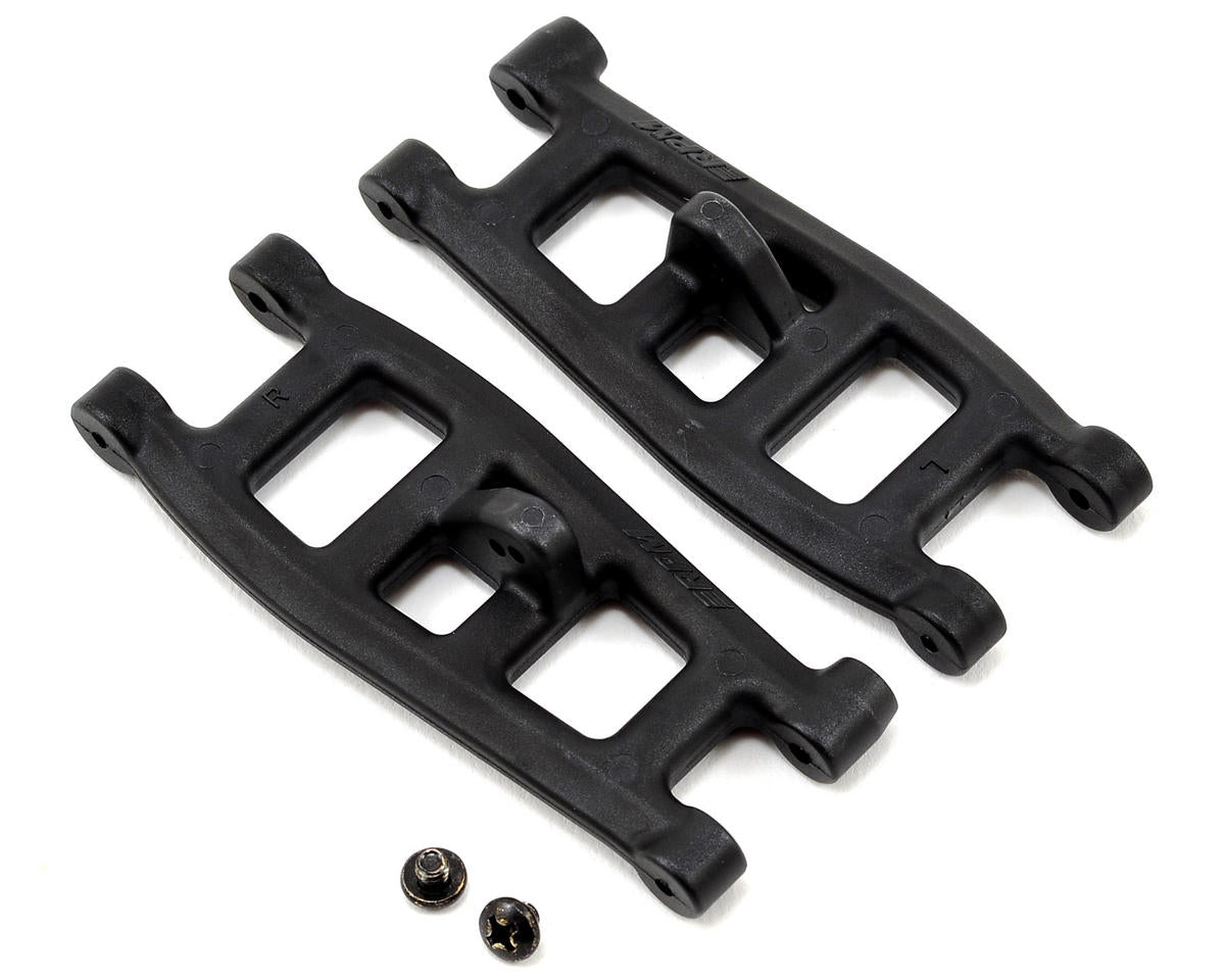 This is a pack of two optional RPM Black A-Arms, intended for use with the ECX Torment, Ruckus and Circuit 1/10 scale vehicles. Strong and beefy, these A-arms offer protection during those unexpected incidents, and are built for tighter tolerances, making critical suspension settings much easier to lock down.