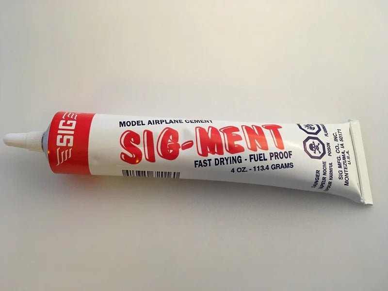 SIG-MENT is a traditional solvent-based model cement that is fast drying and fuel proof. This is the closest thing to Ambroid cement that you can buy! Flammable and vapor harmful - use with fresh air. To be used by adults or by younger modelers only with adult supervision.
