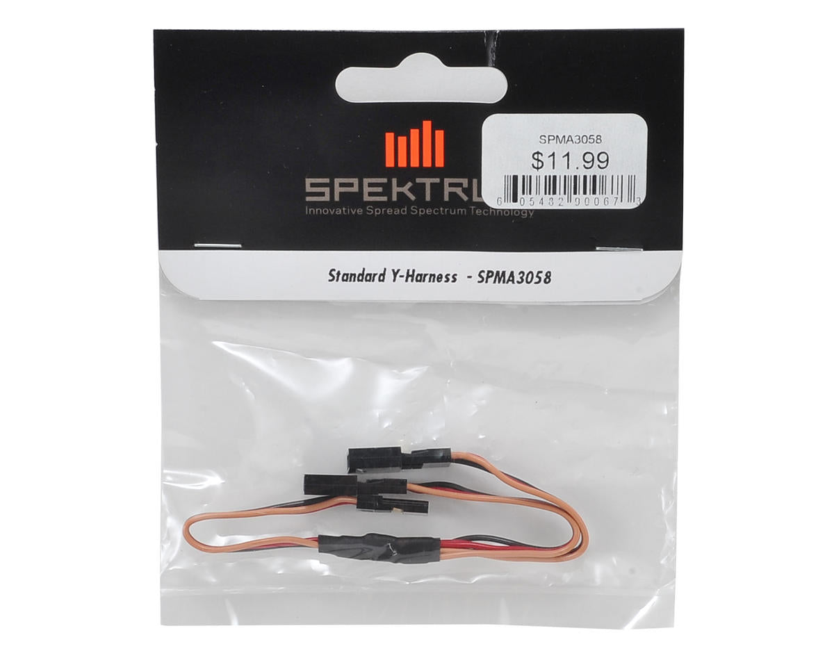 Spektrum RC 6" Standard Y-Harness. This harness is compatible with Spektrum/JR receivers and servos, and is perfect for any application that requires two servos get plugged into the same receiver channel. In airplane applications this would be used to connect your aileron servos. This is useful in other applications as well as it will allow you to connect a servo and receiver battery into the same receiver port.