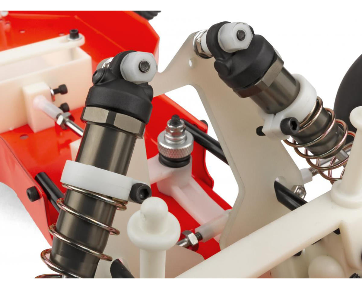 Designed specifically for the unique demands of stadium truck racing, the RC10T features long-arm, wide-track suspension for superior stability and handling. The fully independent four-wheel suspension setup is complemented by hard-anodized shock bodies, bleeder caps, and white nylon locknuts. Heavy-duty fiberglass shock towers and precision-molded virgin nylon arms provide a perfect balance of flex and strength, while adjustable geometry allows for fine-tuning on any terrain. The result is a truck that’s both period-accurate and race-capable right out of the box.