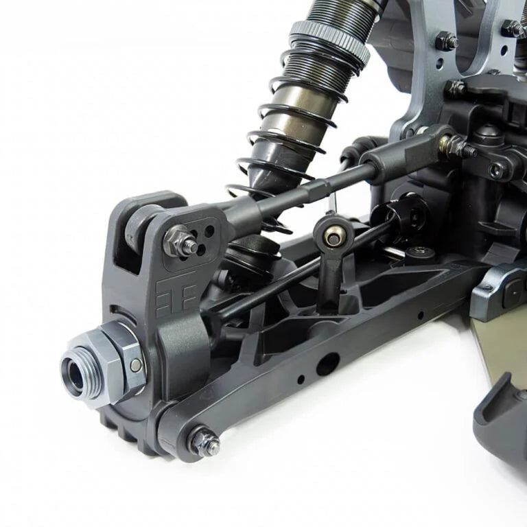 Redesigned ackerman plates increase steering feel and enlarge the tuning window. With 3mm shorter rear drive shafts to acomidate the narrower rear end this chassis is sure to impress and demand low lap times.