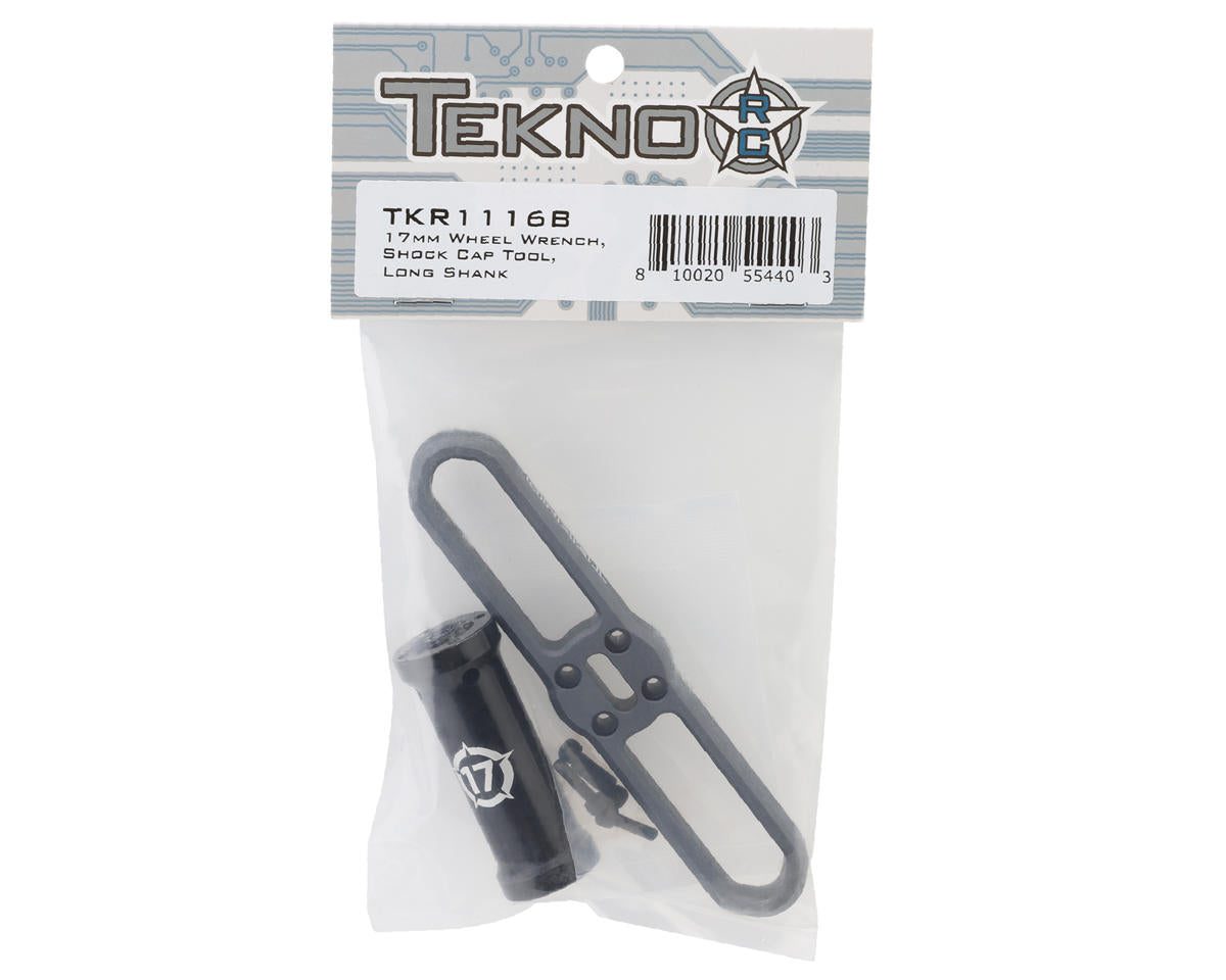 Tekno RC 17mm Wheel Wrench & Shock Cap Tool. Quickly and comfortably wrench on your buggy/truggy with the Tekno RC 17mm Wheel Wrench and Shock Cap Tool. The Tekno wheel wrench features a unique handle design that is comfortable in the hand and provides more leverage than traditional designs. This is accomplished by a longer handle that has ergonomic chamfering throughout for comfort. The wrench also doubles as a shock tool to help aid in the removal and installation of Tekno RC shock caps. Just flip the wrench over and the oval slot on the top fits perfectly over the shock mounting boss on Tekno caps. Additionally, laser-etched markings and a two-tone anodized finish help make the tool look good and easy to spot among the many other wheel wrenches on the market.