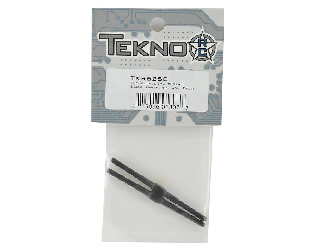 Tekno RC 55mm Length Turnbuckle. This is a replacement for the Tekno EB410 4wd buggy and is used in the rear camber link position. Package includes two turnbuckles.
