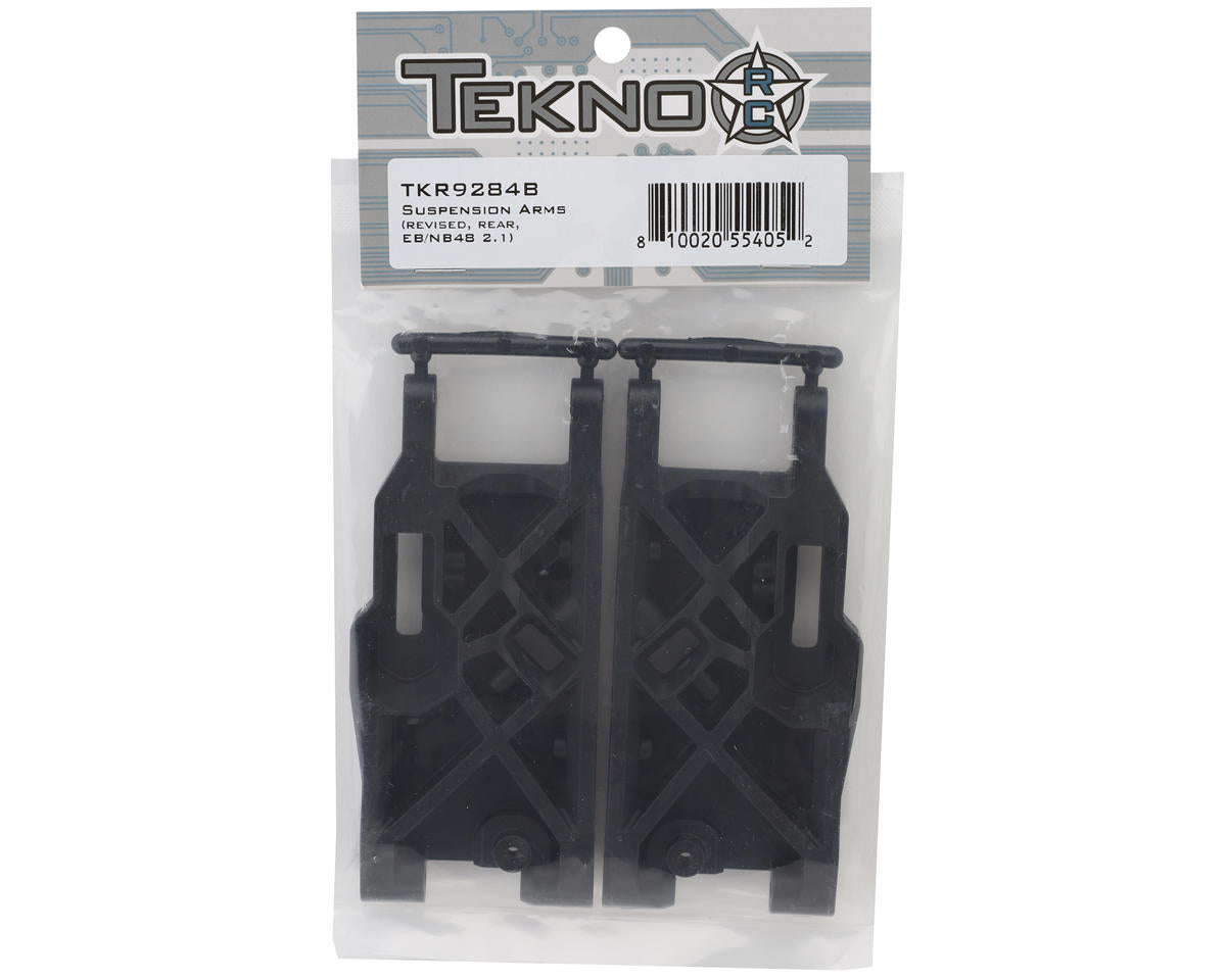 Tekno NB48/EB48 2.1 Revised Rear Suspension Arms. These arms have undergone modifications to create additional space for the -2mm hubs and bulkheads. Package includes 2 rear arms.