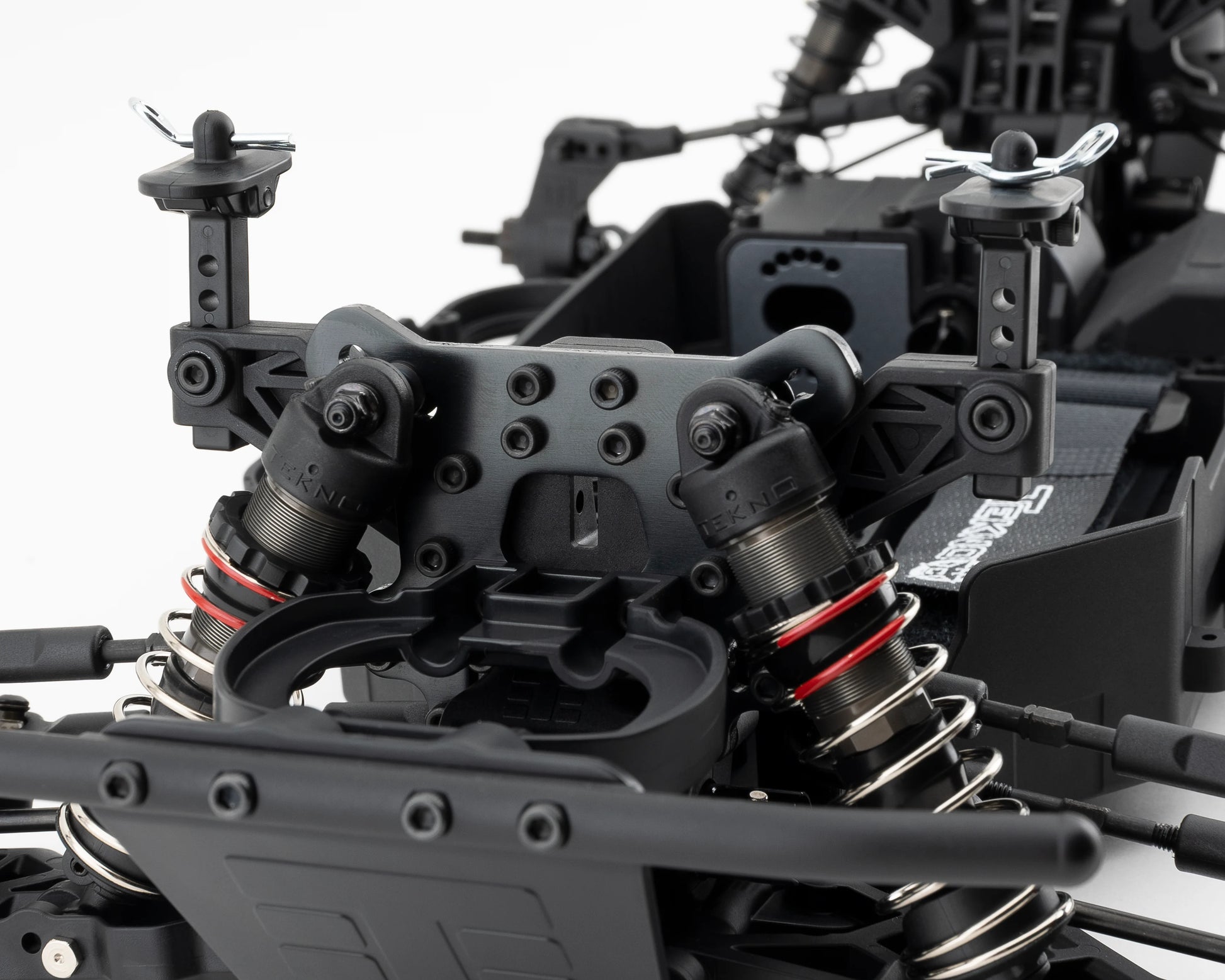 - Beefy 4mm 7075 aluminum shock towers with integrated braces