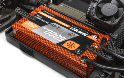 Keeping the battery in while you're running, and getting it out easy when it's time to charge is just something we thought we could do better. Carbon tabs hold the battery down, with adjustable height to accommodate any battery, thin or standard height. Easy in, secure while running, easy out, done.