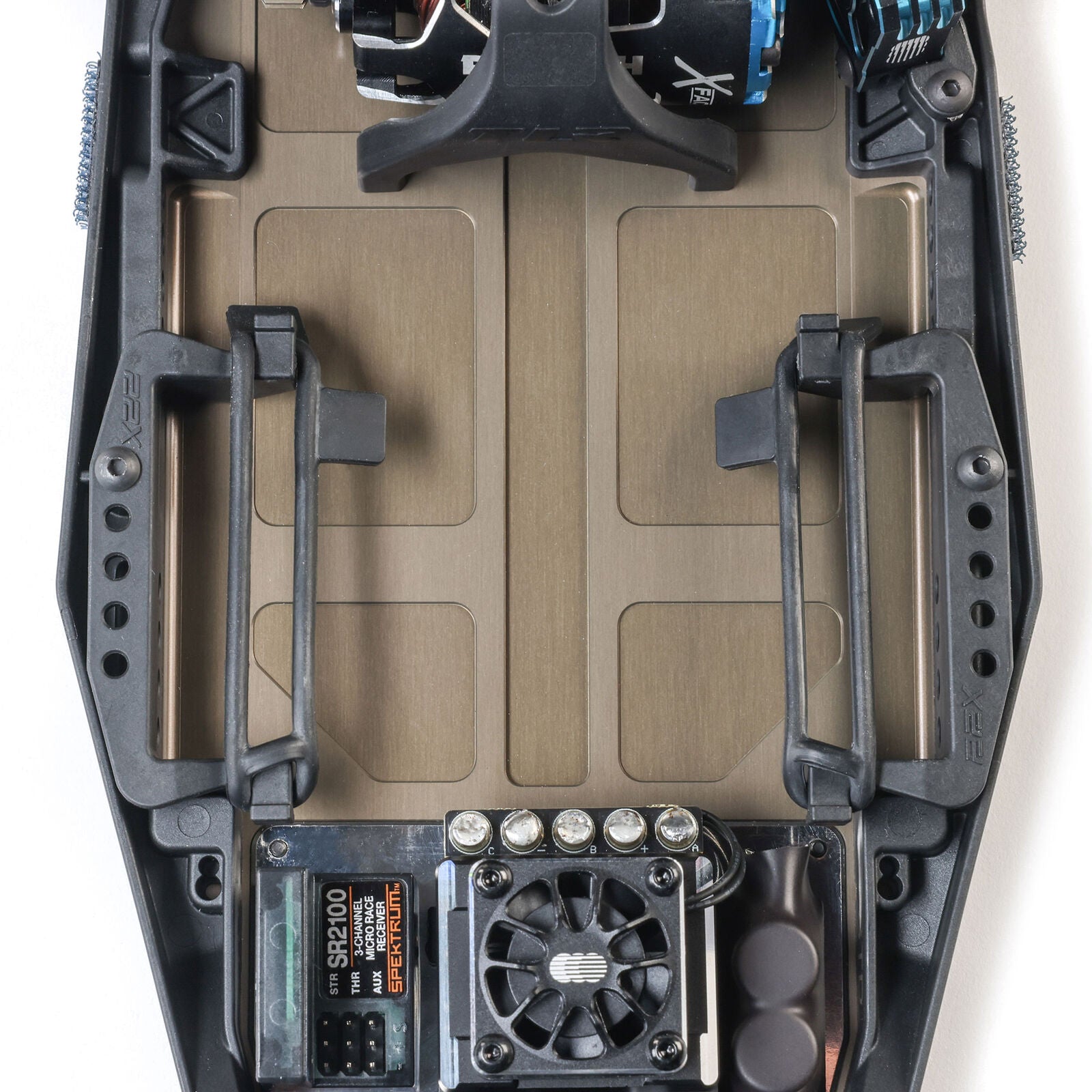The prevalence of spec racing has led to the need for many racers to install motor fans for keeping temperatures lower. Rather than an aluminum mount or double-sided tape, the 22X includes a built-in, molded fan mount secured to the mud guard. You can easily and securely install your choice of widely available 30mm x 30mm fans.