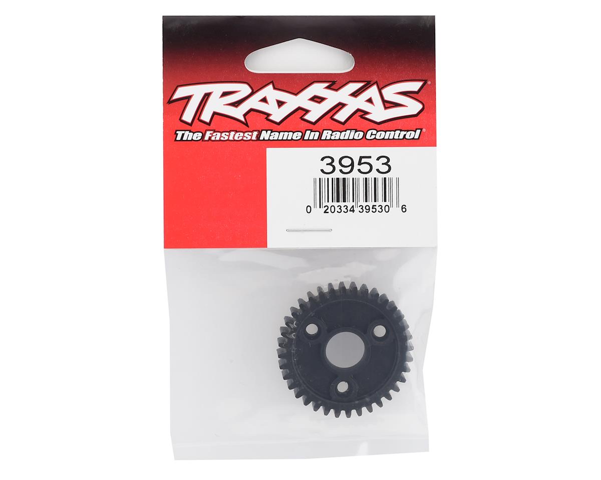 This is the optional 36 tooth spur gear for the Traxxas Revo monster truck. This spur gear goes on the gear box to transfer power from the clutch bell on the engine into the transmission case. The stock spur gear is a 38 tooth gear, so this 36 tooth gear will provide more top end speed with less bottom end acceleration than the stock gear. Optional Traxxas Revo spur gears allow you to increase or decrease the final drive ratio and tune for different applications.
