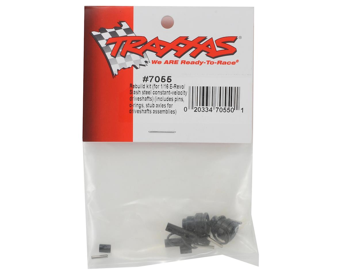 This is a replacement Traxxas Steel Driveshaft Rebuild Kit, and is intended for use with the Traxxas 1/16 E-Revo and Slash trucks, as well as the 1/16 Rally. This kit is used with the optional steel constant-velocity driveshafts, and includes the cross pins, o-rings, and stub axles to rebuild two driveshaft assemblies.