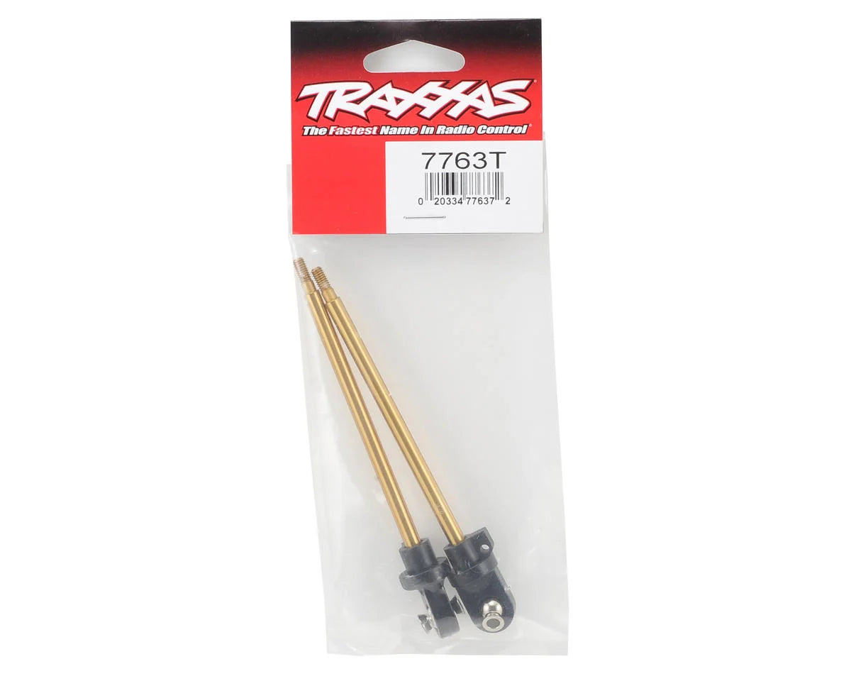 This is a pack of two optional Traxxas GTX TiN-Coated Shock Shafts for the Traxxas X-Maxx Monster Truck. These shock shafts are Titanium-nitride coated to help resist scuffing, increase durability and eliminate "stiction." Shafts come with assembled ends and steel hollow pillow balls.